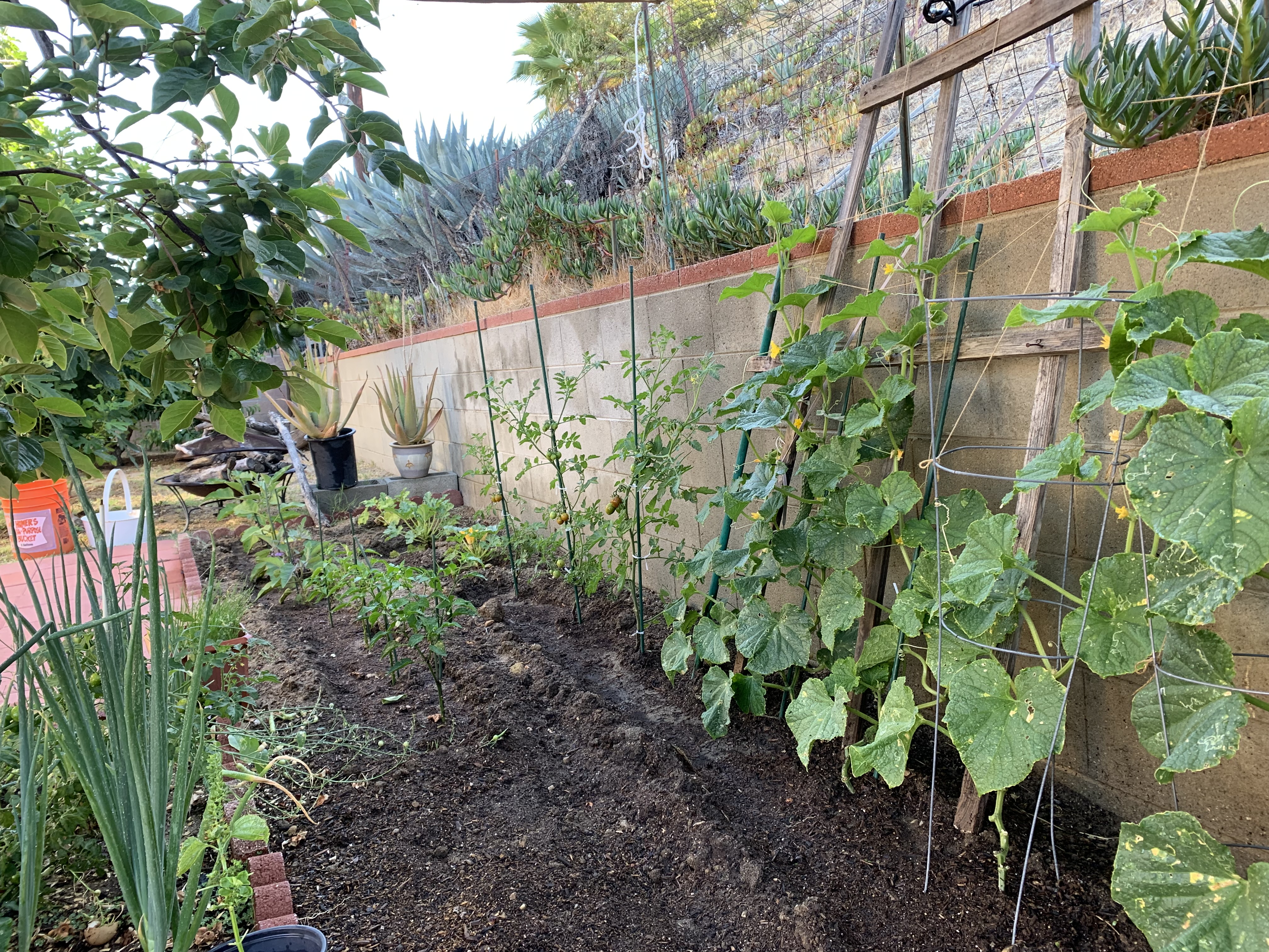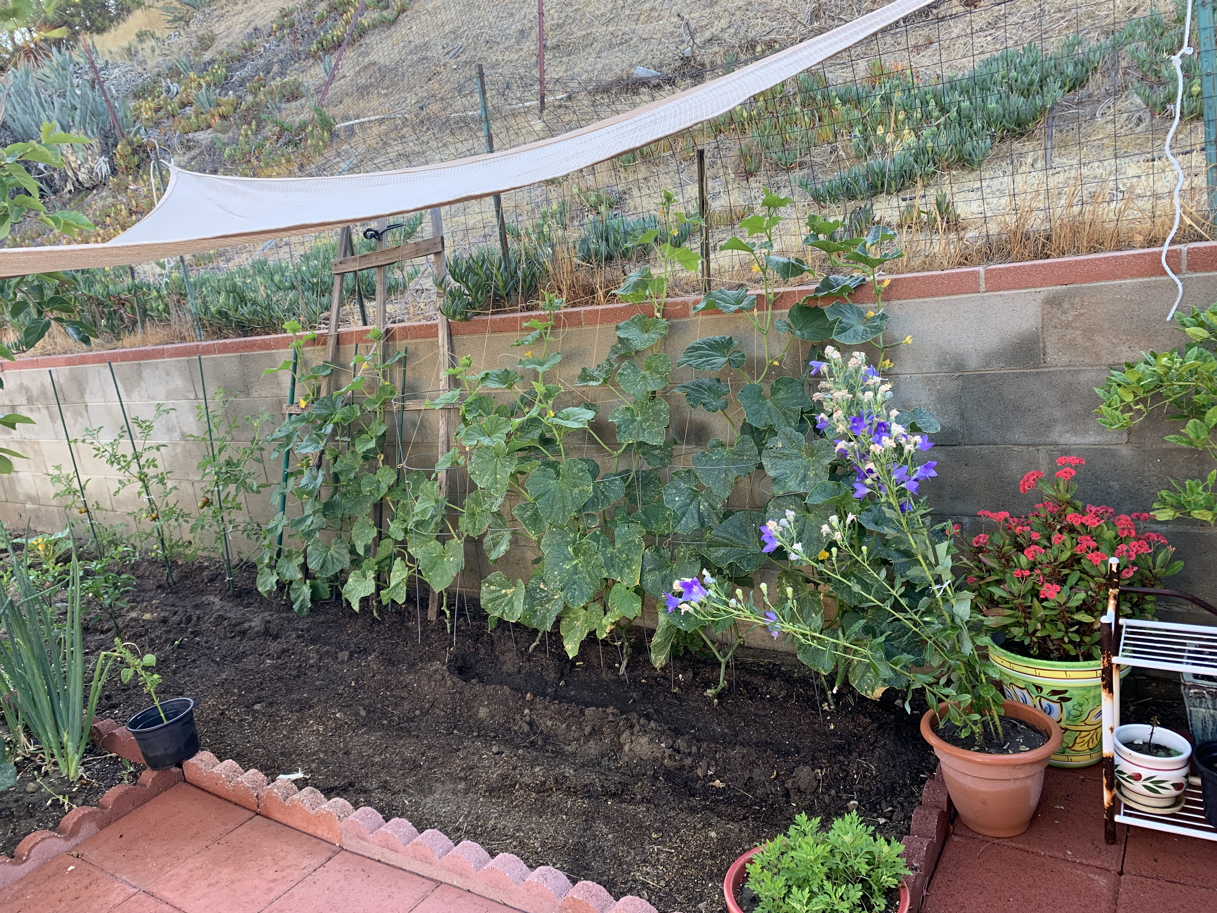 남가주의 여름 태양은 그 열기가 대단하다. 아침에 물을 주어도 한낮이 되면 텃밭의 작물들은 모두 축 늘어져 보기가 안타까울 지경이다. 결국 아내가 그늘막을 만들고 파라솔을 펼쳐 놓아 한나절 햇빛을 가리게 되었다.