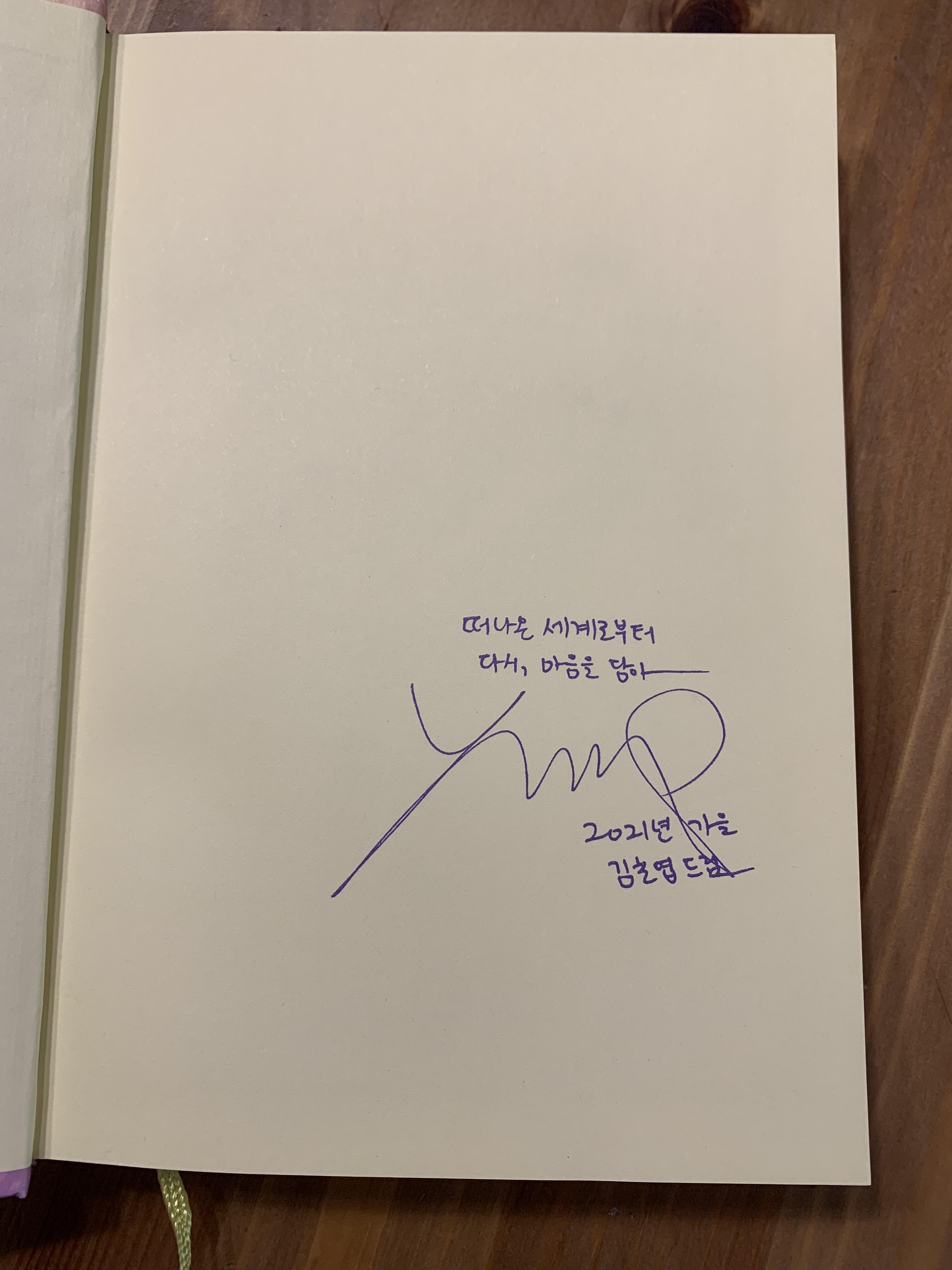 헌책을 사다 보면 책장에 적힌 메모나 책갈피에 끼워진 편지 등을 발견하게 된다. 이 책에는 작가 김초엽의 사인이 들어 있었다. 게다가 이 책은 초판본이다. 작가가 사인한 초판본 책을 판 사람은 누굴까 궁금하다.
