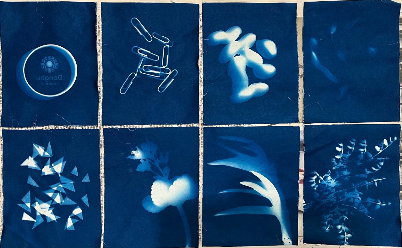 시아노타입(Cyanotype)은 일종의 판화 기법으로 청사진을 말한다. 시료를 바른 종이나 천 위에 물건을 올려놓고 빛을 쬐어주면 그 모양이 나타난다. 선인장과 풀, 나뭇가지 등을 아내에게 부탁해서 가져다가 시아노타입 천 위에 올려 햇볕에 10-15분가량 노출했다가 물에 담가 시료를 제거해서 무늬를 만들었다.