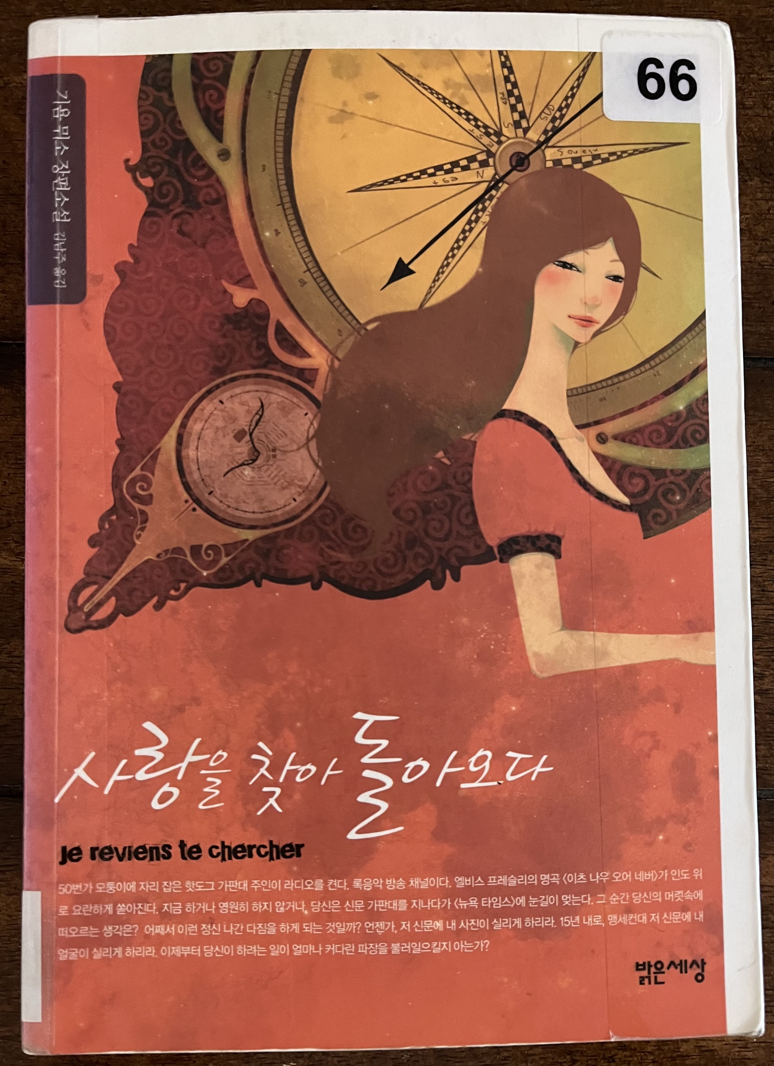 책을 사들고 나와 안으로 들어갔다. 한국 책들은 여전히 예전 그 자리에 있다. 친구의 말처럼 한편에 신간 소설들이 많이 들어와 있다. 한데 모두 내가 잘 모르는 젊은 신인 작가들의 작품이다. 책도 다분히 작가의 연령에 따라 내용이나 문체가 다르다. 나이가 드니 역시 나이 든 작가의 책이 좋다. 결국 신간은 고르지 못하고, 좀 오래된 책들 중에서 3권을 빌려 가지고 나왔다. 그중 한 권이 기욤 뮈소의 소설 ‘사랑을 찾아 돌아오다’이다.