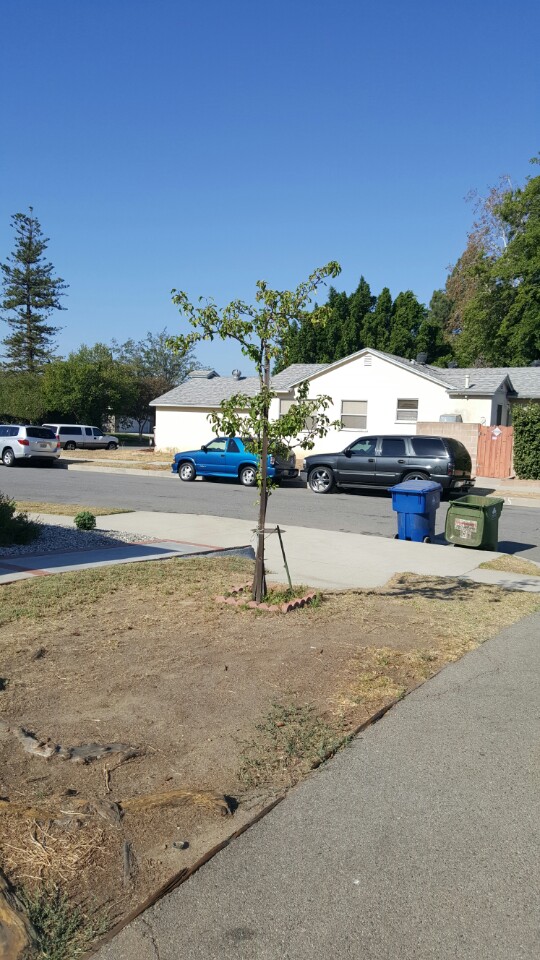 그 후, 앞마당 공사를 하며 나무가 서 있는 자리에 콘크리트를 깔게 되었다. 나무 구실도 제대로 못하는 놈 뽑아버릴까 했는데, 그것도 생물이라 차마 그럴 수 없었다. “네가 장미를 위해 소비한 시간이 너의 장미를 소중하게 만드는 거야.” (어린 왕자에 나오는 글이다.) 그동안 들인 공만큼 정도 들었다. 가드너에게 (나무 가격의 두 배가 넘는) $50을 주고 잔디밭 위로 옮겨 심었다.